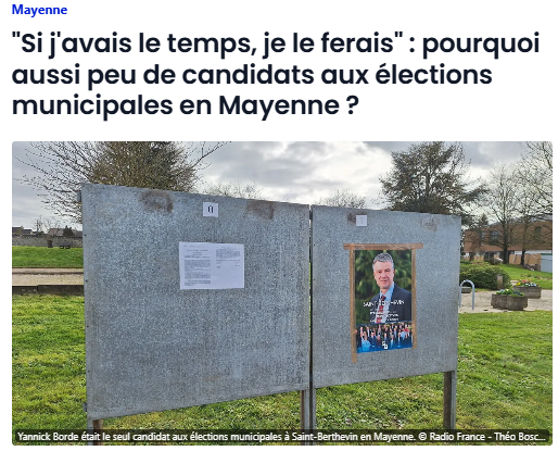 Dans ce département, 199 communes sur 240 (soit 83 %) n’avaient qu’une seule liste candidate au premier tour, un record national juste derrière le Gers (89 %). Au final, dans ce département rural, il n’y aura eu aucun second tour dans les 240 communes. Le reportage de la rédaction d’Ici (Francebleu) souligne un manque d’engouement de la part des citoyens.